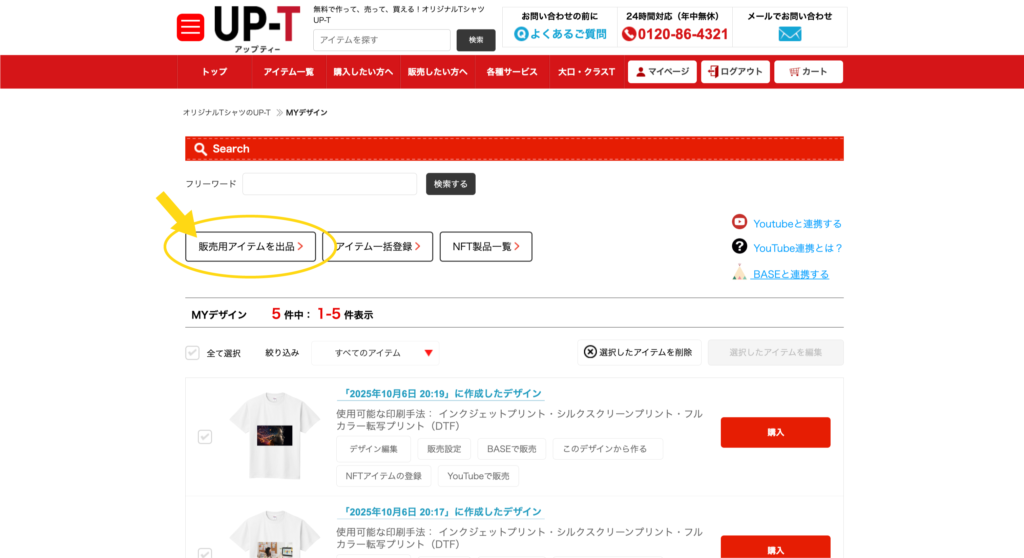 4-1. UP-Tマイページから「MYデザイン」を選択