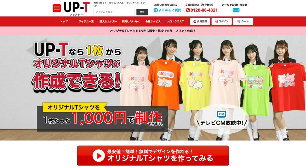 UP-Tは、オリジナルTシャツやグッズを1枚から製作できるプリントサービスです。