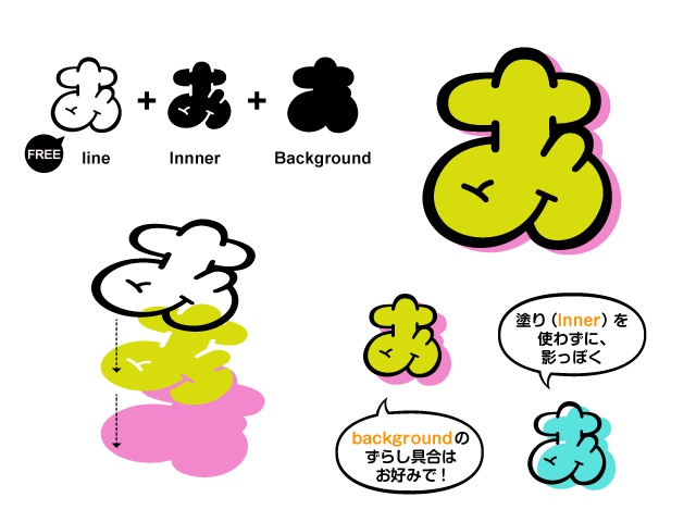 - 特徴:遊び心があるポップな流線と直線的な線が調和した可愛らしいフォント。崩しすぎない程度のデザイン性