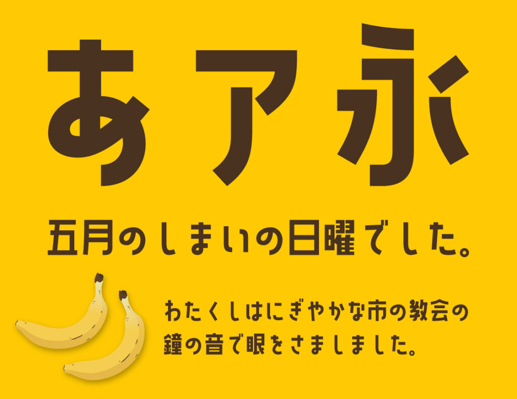 - 特徴:太いウェイトと長体で可愛らしさが絶妙なフォント。堅苦しくなく、子供っぽすぎない万能型