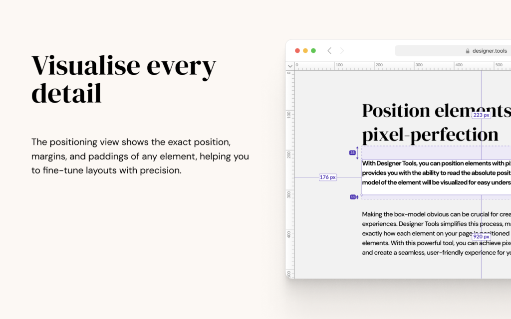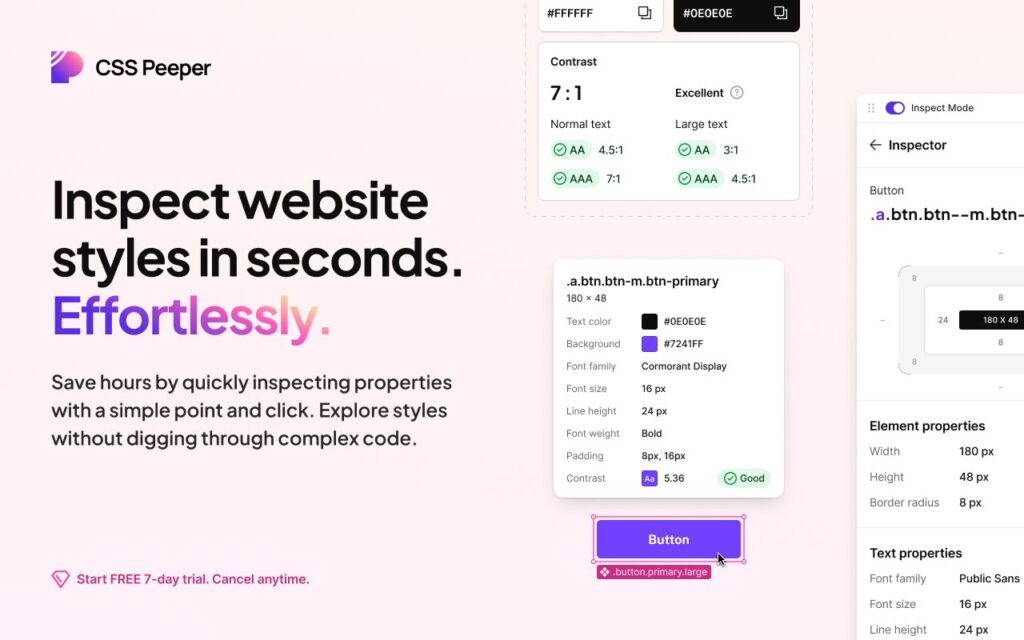 2011年のリリース以来、デザイナーに愛用され続けている定番のフォント確認ツールです。カーソルを合わせるだけで使用フォントが表示され、クリックするとフォントサイズ、太さ、色などの詳細情報も確認できます。