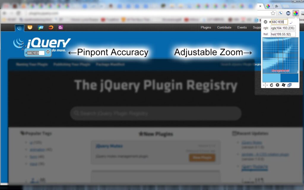 ColorZillaと同様のカラーピッカーツールですが、プレビューウィンドウが大きく表示されるため、細かい部分の色も拾いやすいのが特徴です。最近選択した色の履歴が残る点も便利です。