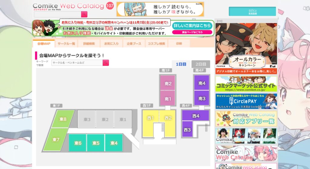 お目当てのサークルの配置場所を確認し、効率的な回り方を計画しておきましょう。