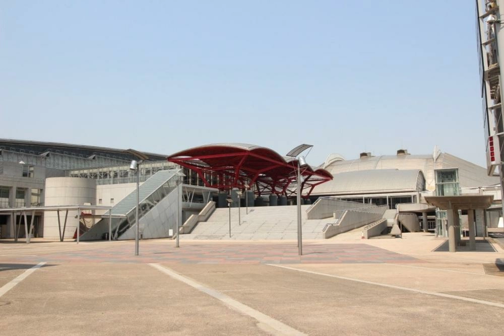 ↓屋根付きの場所(左側の屋根)が国際展示場1~8の中央エントランスです。