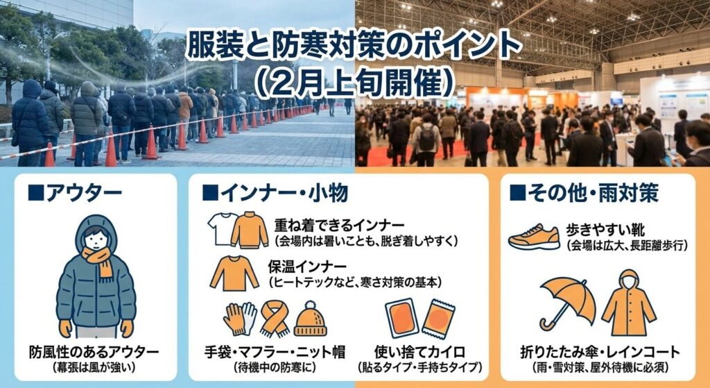 2月上旬の開催となるため、防寒対策は最重要事項です。