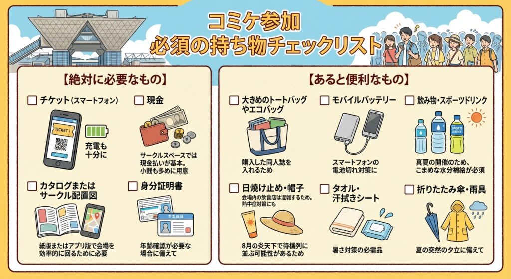 コミケ参加にあたって、忘れてはならない持ち物を確認しておきましょう。